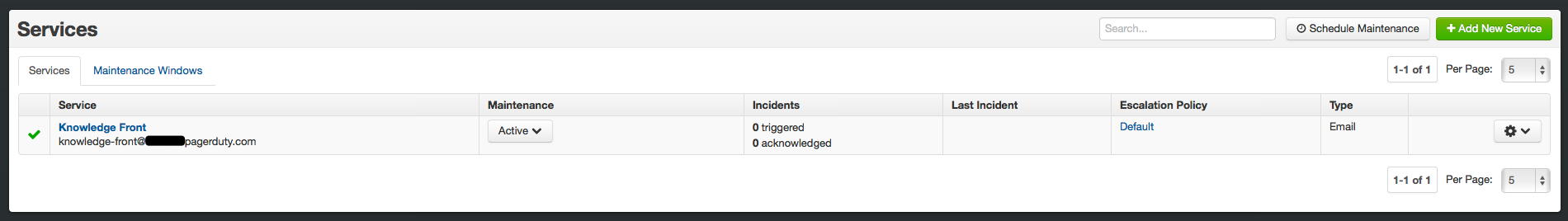 You can confirm this by viewing the “Services” dashboard in PagerDuty: