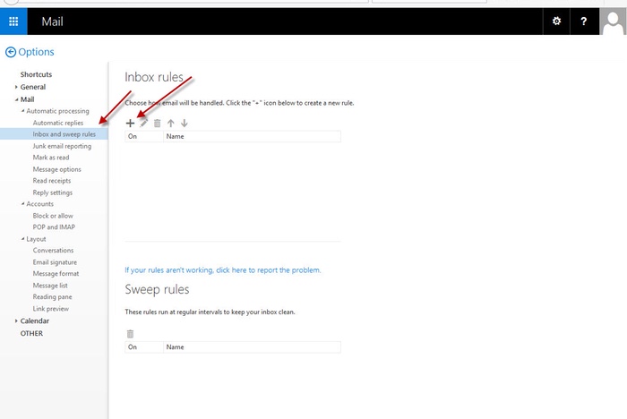Log into the newly created mailbox and create a new rule